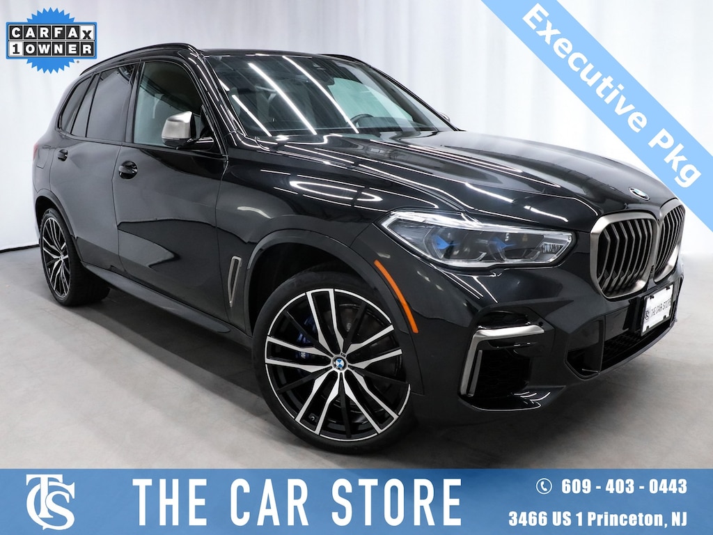 One Owner, X5 M50i, 4D Sport Utility, 4.4L V8 DOHC 32V Twin Turbocharged, 8-Speed Automatic Sport, AWD, Black Sapphire Metallic, Black w/Vernasca Leather Upholstery, 16 Speakers, 4-Wheel Disc Brakes, ABS brakes, Adaptive suspension, AM/FM Stereo, Auto High-beam Headlights, Auto tilt-away steering wheel, Auto-dimming door mirrors, Auto-dimming Rear-View mirror, Automatic temperature control, Brake assist, Connected Package Pro, ConnectedDrive Services, Dual front impact airbags, Dual front side impact airbags, Electronic Stability Control, Executive Package, Exterior Parking Camera Rear, Four wheel independent suspension, Front dual zone A/C, Front Ventilated Seats, Fully automatic headlights, Garage door transmitter, Gesture Control, Glass Controls, harman/kardon Surround Sound System, harman/kardon® Speakers, Head restraints memory, Head-Up Display, Heated door mirrors, Heated Front Seats, Heated Front Seats w/Armrests & Steering Wheel, Icon Adaptive LED Headlights w/Laserlight, Illuminated entry, Increased Top Speed Limiter, Knee airbag, Leather Shift Knob, Leather steering wheel, Live Cockpit Pro w/Navigation, Low tire pressure warning, Memory seat, Multi-Contour Seats, Navigation System, Occupant sensing airbag, Overhead airbag, Panoramic Sky Lounge LED Roof, Power adjustable front head restraints, Power door mirrors, Power driver seat, Power passenger seat, Radio data system, Rain sensing wipers, Rear dual zone A/C, Rear Manual Side Window Shades, Rear window defroster, Rear window wiper, Remote keyless entry, Security system, SiriusXM Satellite Radio w/360L, Speed control, Sport steering wheel, Steering wheel memory, Telescoping steering wheel, Tilt steering wheel, Traction control, Turn signal indicator mirrors, Ventilated front seats, Vernasca Leather Upholstery, Wheels: 22" x 9.5" Fr & 22" x 10.5" Rr M Double-Spoke, WiFi Hotspot, Wireless Charging.