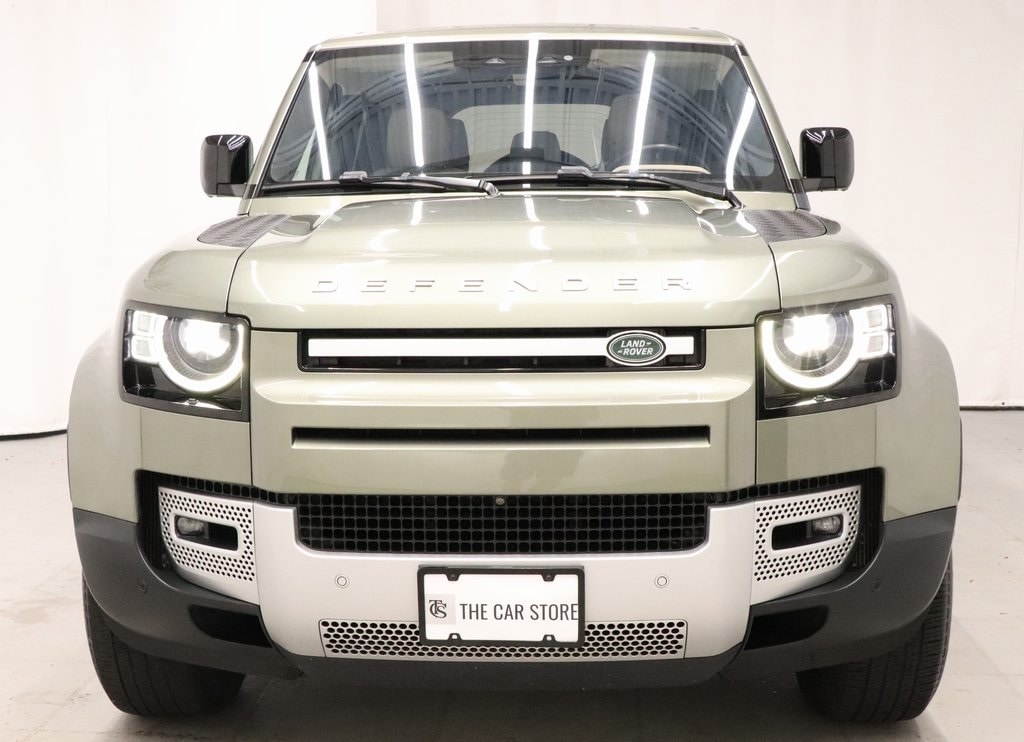 One Owner, Clean Carfax, Panoramic Sunroof, Defender 110 SE, 4D Sport Utility, 3.0L I6, 8-Speed Automatic, 4WD, Pangea Green Metallic, Khaki w/Grained Leather Seat Trim, 14-Way Heated Electric Memory Seats, 4-Wheel Disc Brakes, ABS brakes, Apple CarPlay & Android Auto, Auto High-beam Headlights, Auto tilt-away steering wheel, Auto-dimming door mirrors, Auto-dimming Rear-View mirror, Automatic temperature control, Brake assist, Dual front impact airbags, Dual front side impact airbags, Electronic Stability Control, Four wheel independent suspension, Front dual zone A/C, Front fog lights, Fully automatic headlights, Garage door transmitter: HomeLink, Grained Leather Seat Trim, Heated door mirrors, Heated front seats, Illuminated entry, Leather Shift Knob, Leather steering wheel, Low tire pressure warning, Memory seat, Navigation system: Connected Navigation PIVI Pro, Occupant sensing airbag, Overhead airbag, Power door mirrors, Power driver seat, Power passenger seat, Radio: 825W 15 Speaker Meridian Surround Sound Sys, Rain sensing wipers, Rear window defroster, Rear window wiper, Remote keyless entry, Security system, Speed control, Steering wheel memory, Telescoping steering wheel, Traction control, Wheels: 20" Gloss Sparkle Silver Style 5094. Priced below KBB Fair Purchase Price!