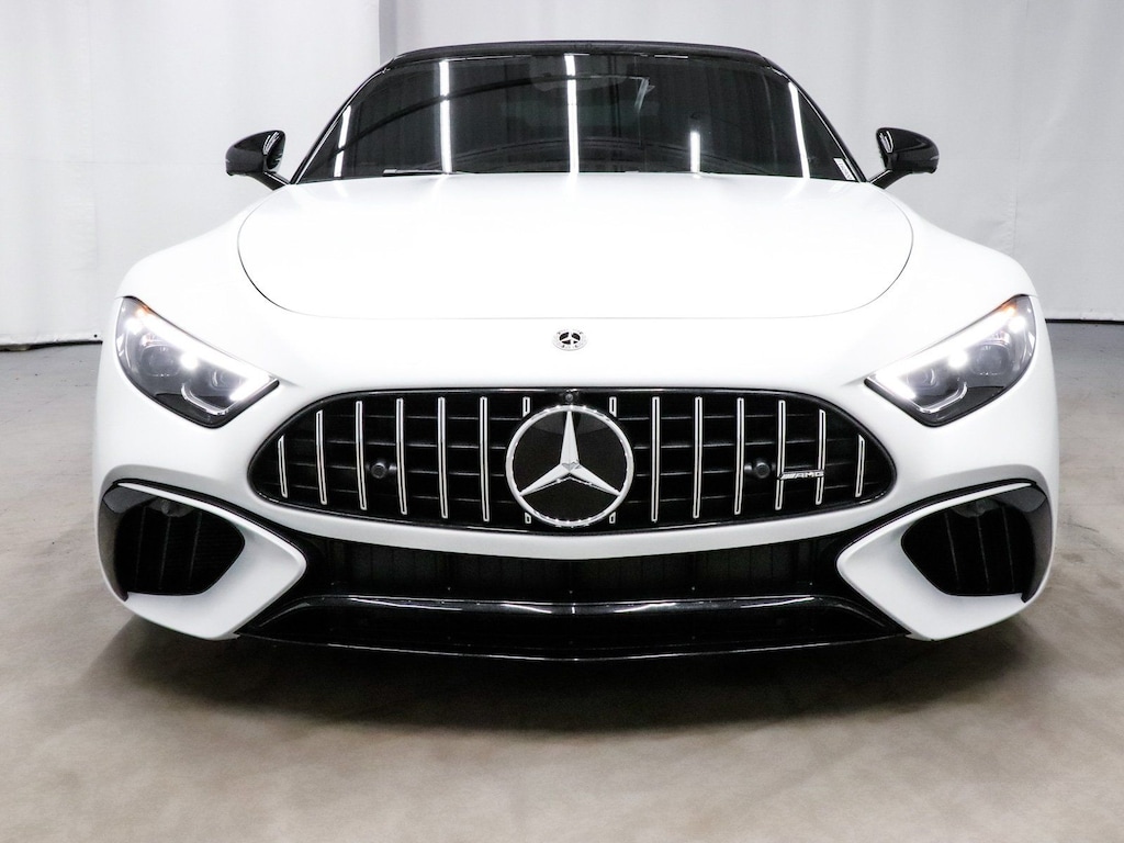 One Owner, Clean Carfax, Amg Exterior Night Styling, SL 63 AMG® 4MATIC® Convertible, 2D Convertible, 4.0L V8, 9-Speed Automatic, 4MATIC®, MANUFAKTUR Moonlight White Magno, Black w/Nappa Leather Upholstery, 11 Speakers, 4-Wheel Disc Brakes, ABS brakes, Active Multicontour Front Seats w/Massage Feature, Adaptive suspension, AM/FM radio: SiriusXM, Apple CarPlay®/Android Auto®, Auto High-beam Headlights, Auto tilt-away steering wheel, Auto-dimming door mirrors, Auto-dimming Rear-View mirror, Automatic temperature control, Black Microfiber Headliner, Bluetooth® Connectivity, Brake assist, Burmester® Surround Sound System, Child-Seat-Sensing Airbag, Convertible roof lining, Convertible roof wind blocker, Dual front impact airbags, Dual front side impact airbags, Electronic Stability Control, Exterior Parking Camera Rear, Four wheel independent suspension, Front Axle Lift System, Front dual zone A/C, Garage door transmitter: HomeLink, Glass rear window, Heads-Up Display, Heated front seats, Heated steering wheel, Illuminated entry, Integrated roll-over protection, Knee airbag, Leather steering wheel, Low tire pressure warning, Memory seat, Nappa Leather Upholstery, Navigation System, Occupant sensing airbag, Overhead airbag, Performance Trim Line, Power convertible roof, Power door mirrors, Power driver seat, Power passenger seat, Radio: MBUX Infotainment & Navigation System, Rain sensing wipers, Rear window defroster, Remote keyless entry, Security system, SiriusXM Radio, Smartphone Integration, Speed control, Steering wheel memory, Steering wheel mounted audio controls, Telescoping steering wheel, Traction control, Turn signal indicator mirrors, Ventilated front seats, Wheels: 21" AMG® Forged Cross-Spoke Silver. Recent Arrival!