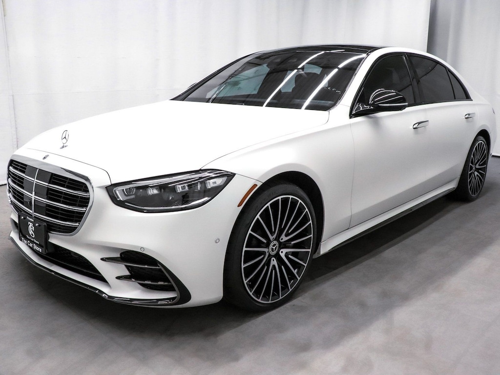 One Owner, Amg Line Package, S 500 4MATIC®, 4D Sedan, 3.0L I6 Turbo, 9-Speed Automatic, 4MATIC®, MANUFAKTUR Cashmere White Magno, Sienna Brown/Black w/Leather Upholstery, 15 Speakers, 3-Spoke Wood & Leather Steering Wheel, 4-Wheel Disc Brakes, ABS brakes, Active Ambient Lighting, Active Cruise Control, Adaptive suspension, AMG® Floor Mats, AMG® Line Exterior (772), Apple CarPlay®/Android Auto®, Auto High-beam Headlights, Auto tilt-away steering wheel, Auto-dimming door mirrors, Auto-dimming Rear-View mirror, Auto-leveling suspension, Automatic temperature control, Black Headliner, Brake assist, Burmester® 3D Surround Sound System, Child-Seat-Sensing Airbag, Door auto-latch, Dual front impact airbags, Dual front side impact airbags, Electronic Stability Control, Exterior Parking Camera Rear, Four wheel independent suspension, Front dual zone A/C, Garage door transmitter: HomeLink, Genuine wood dashboard insert, Genuine wood door panel insert, Head restraints memory, Heated door mirrors, Heated front seats, Illuminated entry, Knee airbag, Leather steering wheel, Leather Upholstery, Low tire pressure warning, Memory seat, Navigation System, Night Package, Occupant sensing airbag, Overhead airbag, Power adjustable front head restraints, Power adjustable rear head restraints, Power door mirrors, Power driver seat, Power Front Seats w/4-Position Memory, Power moonroof: Panorama, Power passenger seat, Premium audio system: MBUX, Radio: MBUX w/Navigation, Rain sensing wipers, Rear fog lights, Rear side impact airbag, Rear Window Blind, Rear window defroster, Remote keyless entry, Security system, SiriusXM Radio, Sport Package Code, Stainless Steel-Metal Blended Black/Silver Trim, Steering wheel memory, Telescoping steering wheel, Traction control, Turn signal indicator mirrors, Ventilated front seats, Wheels: 21" AMG® V-Multi Spoke w/Black Inlays. Recent Arrival!
